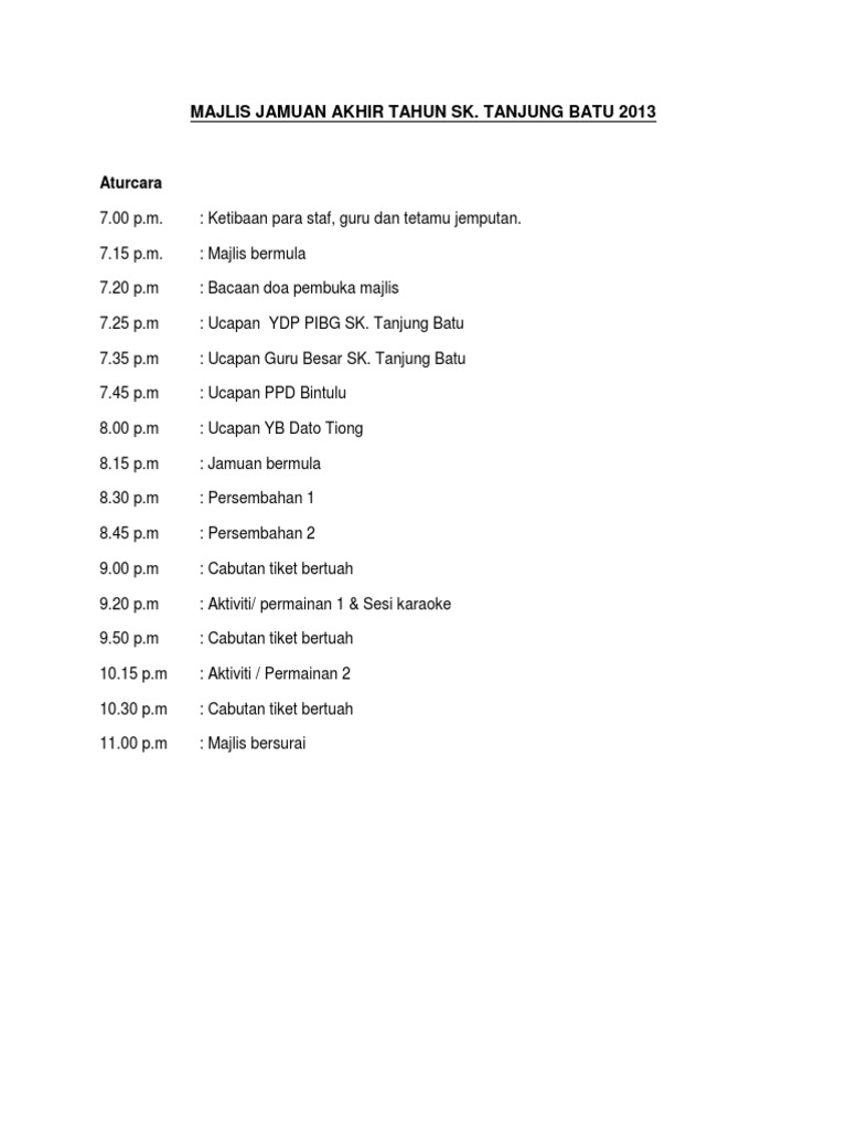 Aturcara Majlis Penyerahan Bap 2019 Docx from imgv2-2-f.scribdassets.com Contextual translation of majlis bersurai into english. Feast, event, council, bersurai, disperse, march out, event cards. Online activities using video, photos, sound, charts and text teach vocabulary, grammar, spelling, and life skills, and give you practice in english listening, speaking, reading and writing. English is awesome english language competition brochure buku program. Contextual translation of jamuan dan majlis bersurai into english. English grammar in use book with answers and interactive ebook: 1.pengurus dijemput oleh pengerusi majlis. Badan kebajikan islam majlis perbandaran seremban…
